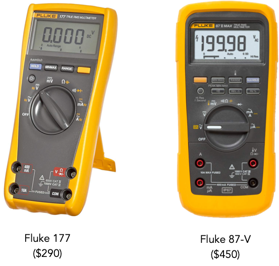 If you want go to the top end of Fluke’s line, there is the model 87-V for around $450. It has a 4 1/2 digit display but aside from that I don’t see much reason to buy an 87-V over the 177 for use in EE109, but there are a lot of EE’s in online forums who have bought them and think highly of them.